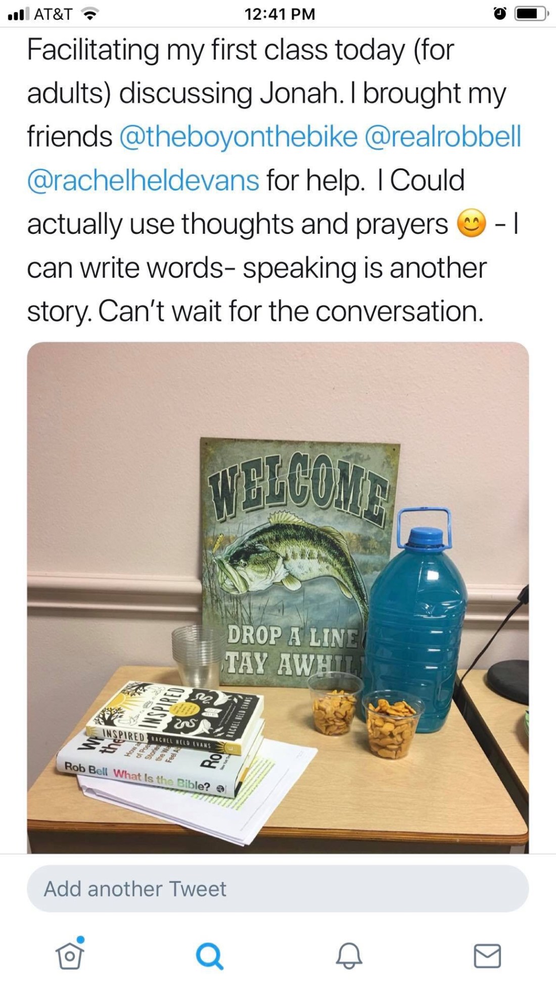 I made it through class @rachelheldevans ! You probably know, but it was good. I talked about you throughout the story. I feel so much grief, like the disciples walking away from Jerusalem. I feel disoriented and confused. How do we go on without you? These disciples wondered too. Then Jesus punks them (thank you Jonathan Martin for that observation Ha!). Jesus hears their pain, as you hear ours now too. Your words are filling us up and setting us on fire. You took me back to church when you walked this earth – a new one-one that values me in every way you taught me. You and Jonathan Martin took me in and told me a great story. Your words guided the very first class I ever led, and your words guided me again today. It’s not an accident I was leading class the day after you left this Earth. It was also communion Sunday. I couldn’t help but think of those disciples as they saw Jesus when they broke bread. I felt your presence strongly too at that moment. Thank you, Rachel. You led me to a church that wants to get me trained. That really scared me at first, because I was just coming to hear the story. They are asking me to tell it too. I feel your energy telling me to do this, so I will.