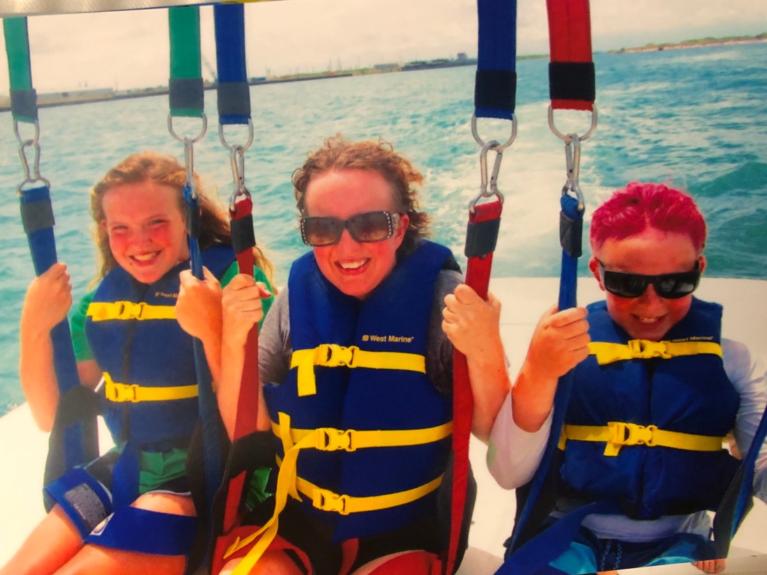 My life has changed so much that not only am I starting seminary, but I went parasailing on our last vacation. I wanted to do something the old Lindsay would never do before I start school. I was scared, because I am scared of heights, but I saw beauty I would never see any other way. I got to do it with both kids too, and we saw two dolphins swimming! Kimberlyn was scared, but went with Jake before me, so she comforted me despite her anxiety. Blake, who was super chill and loving it, made us laugh. After that, I felt like a new person.