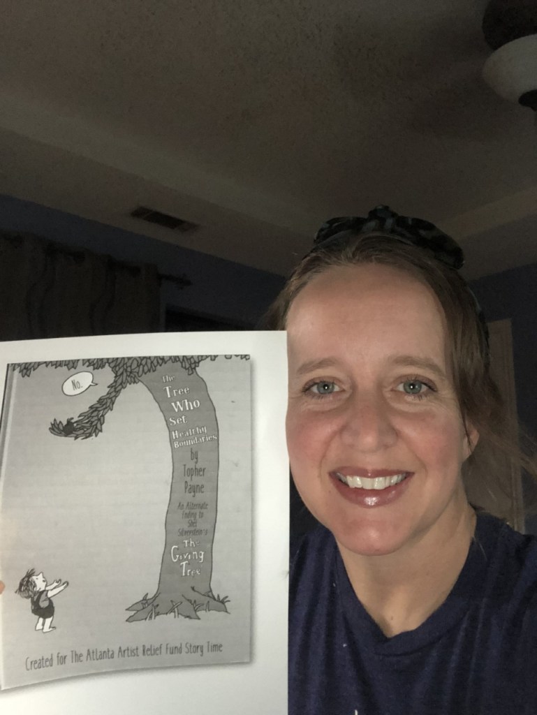 Here is a picture of me with a printout of the new version of The Giving Tree. This is my story.