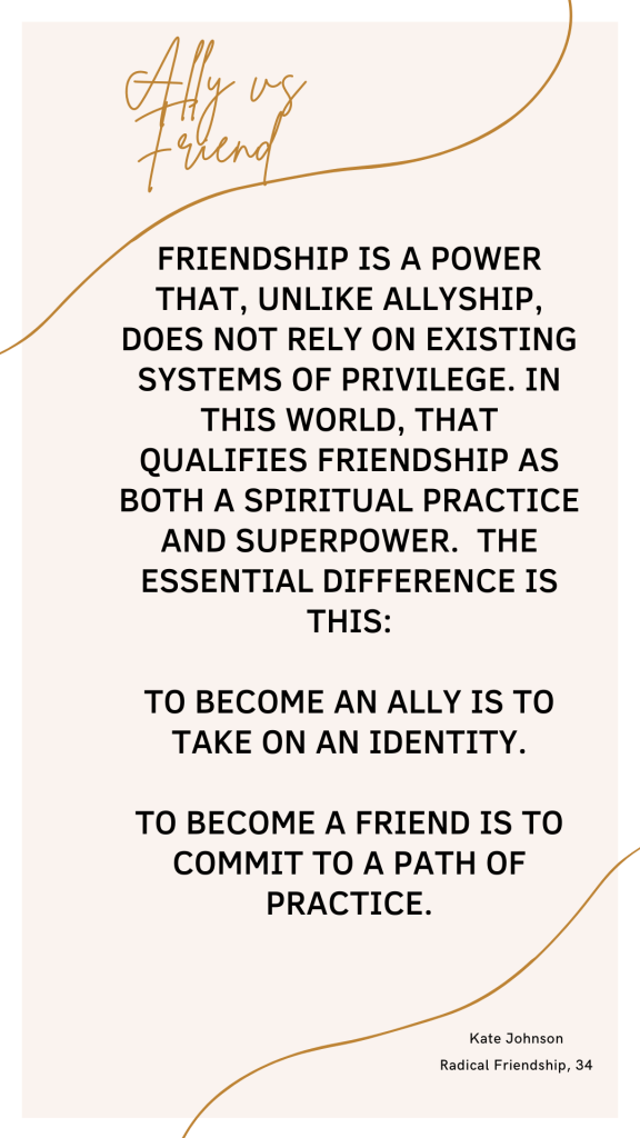 I also love how she defines allyship vs friendship. I am including a quote meme for that one because it is so profound.